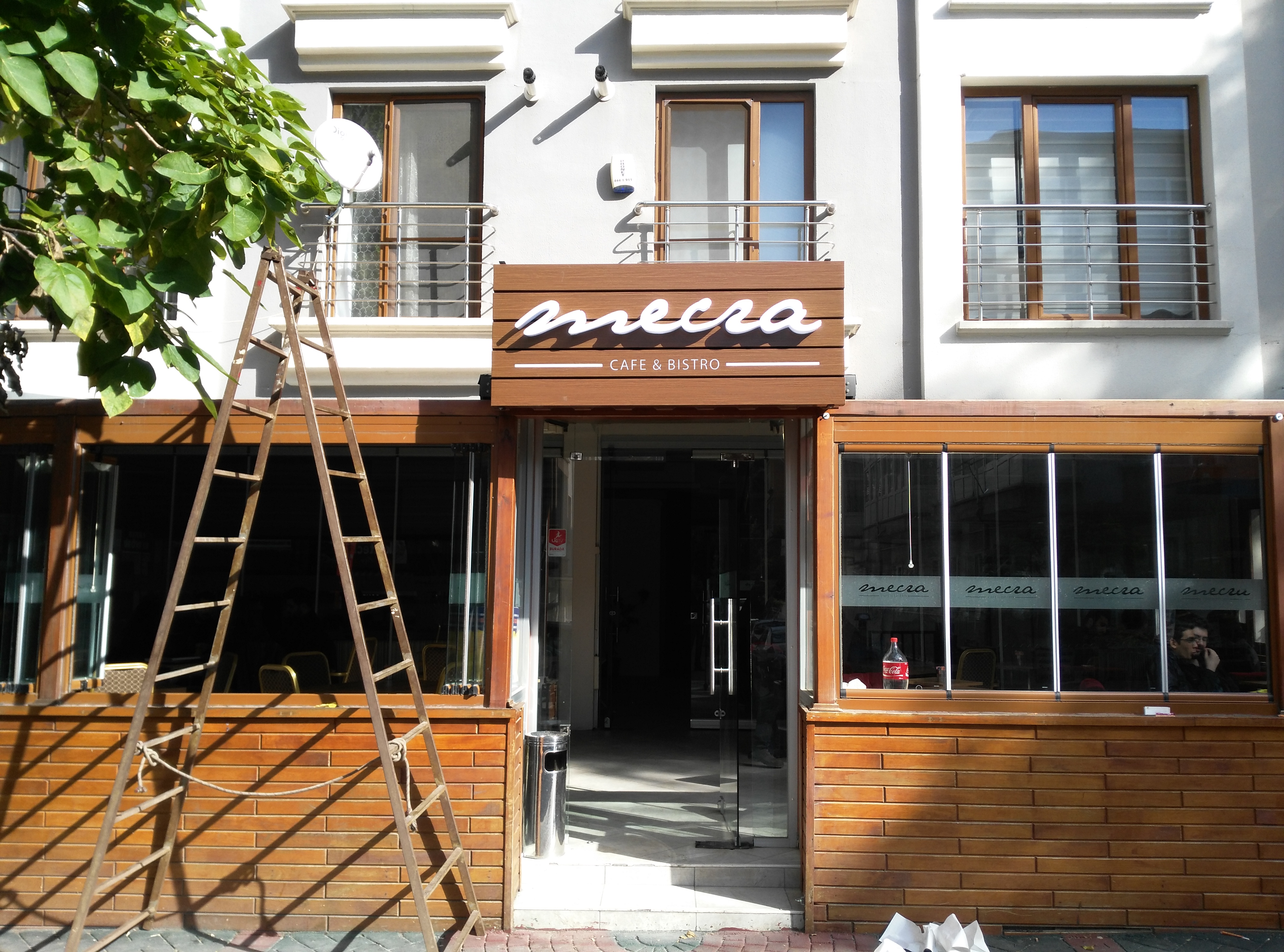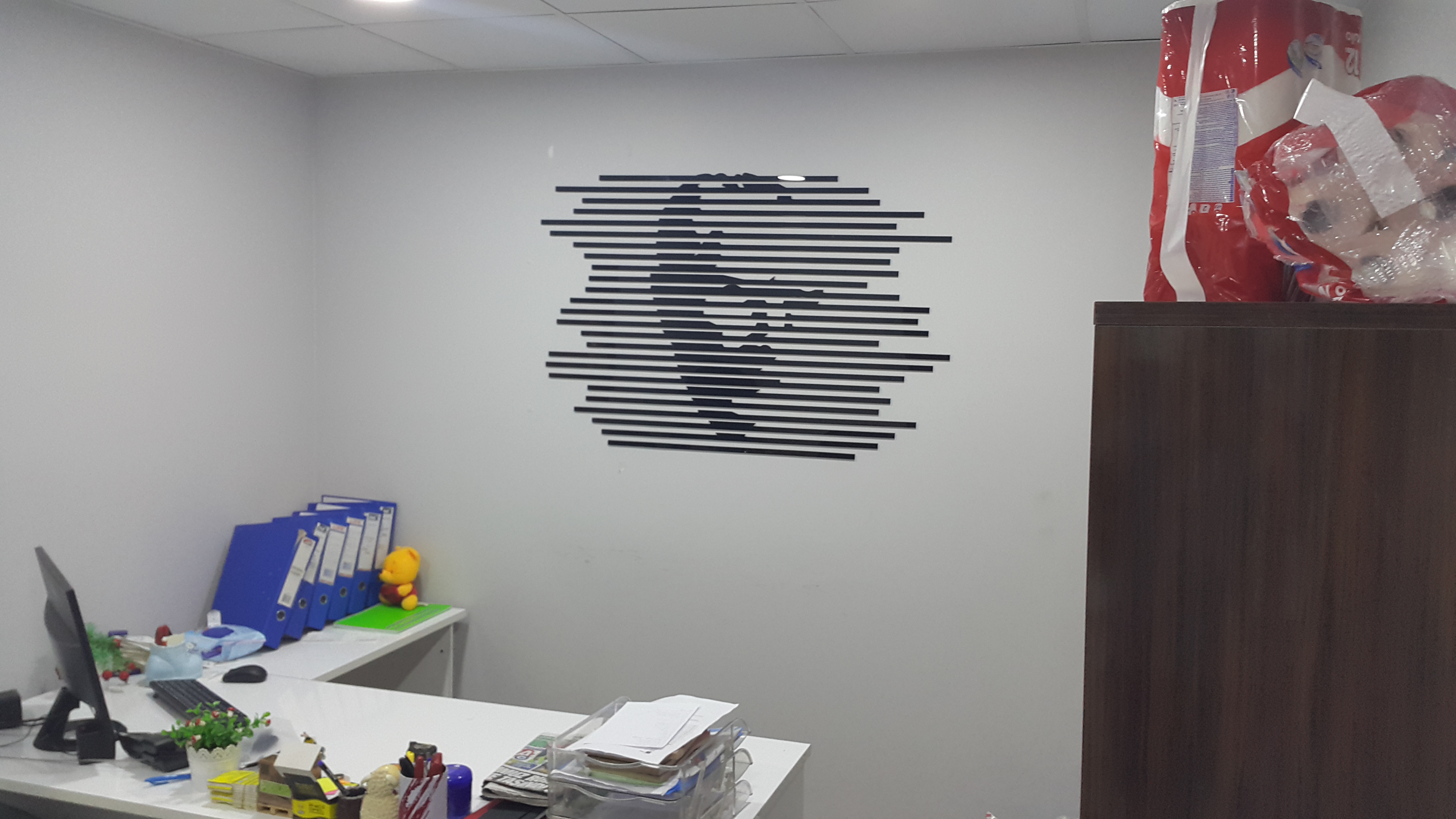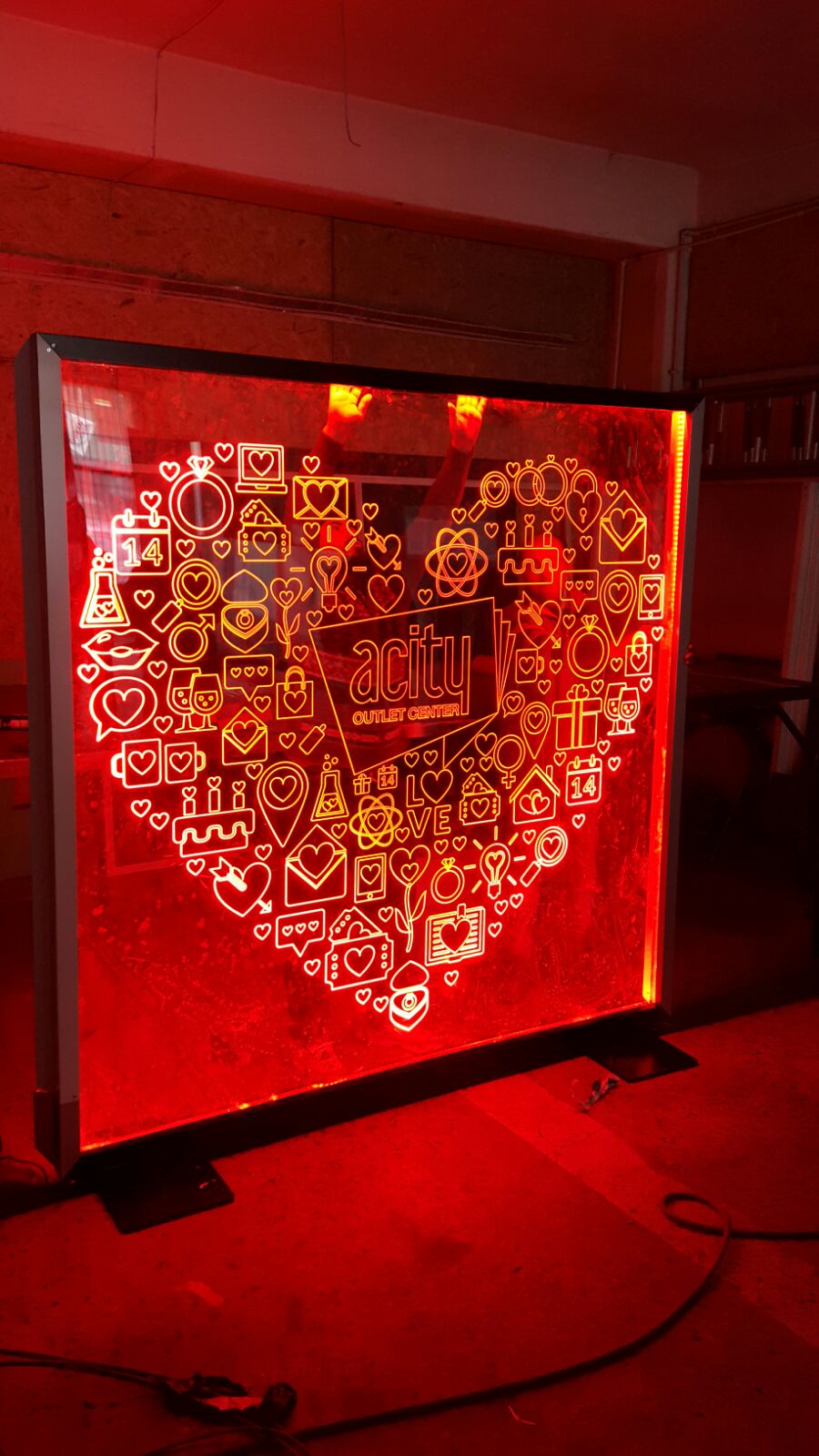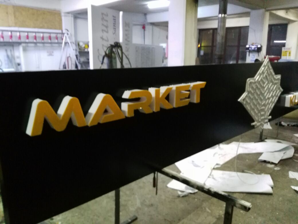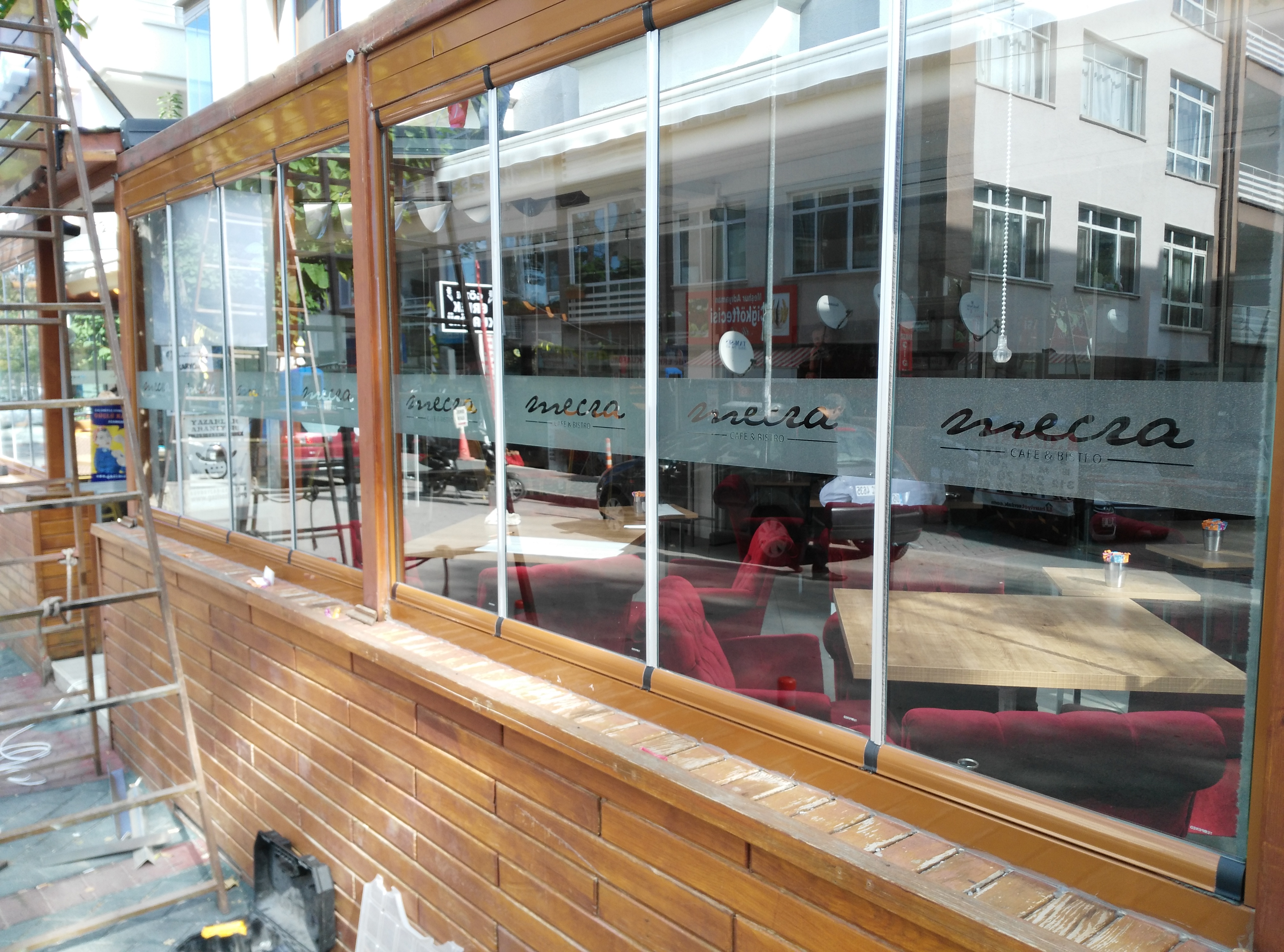 Firmanın logosu lazer ile pleksi kesim yapıldıktan sonra kutu harf şekli verildi. İçerisine uzun ömürlü led ışık sistemi, hesaplanan aralıklarla dizildi ve uygulama yapılacak alanın şablonu ile beraber mevcut yere uygulandı. Camlar aynı şekilde firmanın logosu kesilen buzlu folyolar belirli yükseklikte uygulandı.